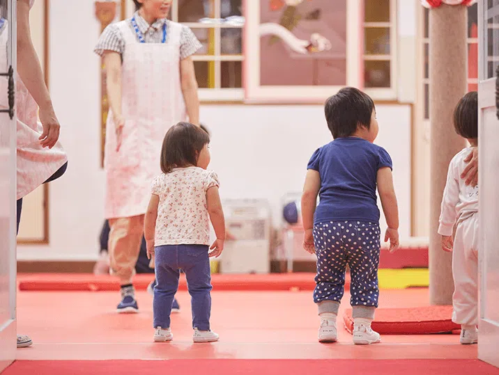 施設長 (園長) 1名、保育スタッフ (保育士または幼稚園免許有資格者)6名、教員2名および調理師 3名 (パート含む)、看護師4名