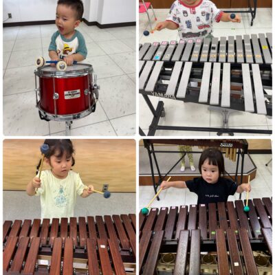 楽器遊びをしました! 木琴や鉄琴、太鼓をたたいたり、カスタネットや鈴を振りました♪ はじめて楽器に触れることができて大喜びの子どもたち(*´ω`*) 嬉しそうに…