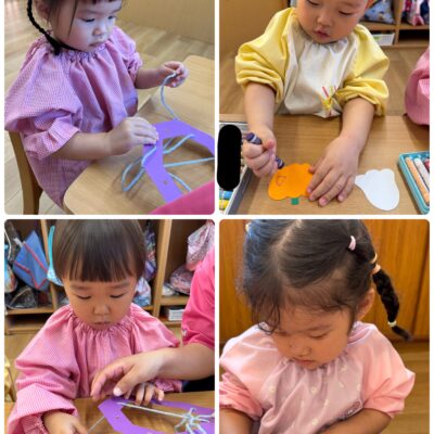 ハロウィンの製作をしました♪ つぼみさんは、蜘蛛の巣のひも通し。 中々通せず苦戦する子もいましたが、集中して取り組んでいました!かぼちゃの顔も真剣に描いていまし…