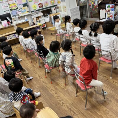 絵本「だるまさんが」の製作をしました。 つぼみさんは塗り絵で、赤いクレヨンでしっかりと色を塗りました。丁寧に周りから塗り始める子、ぐるぐると力強く塗る子、とても…